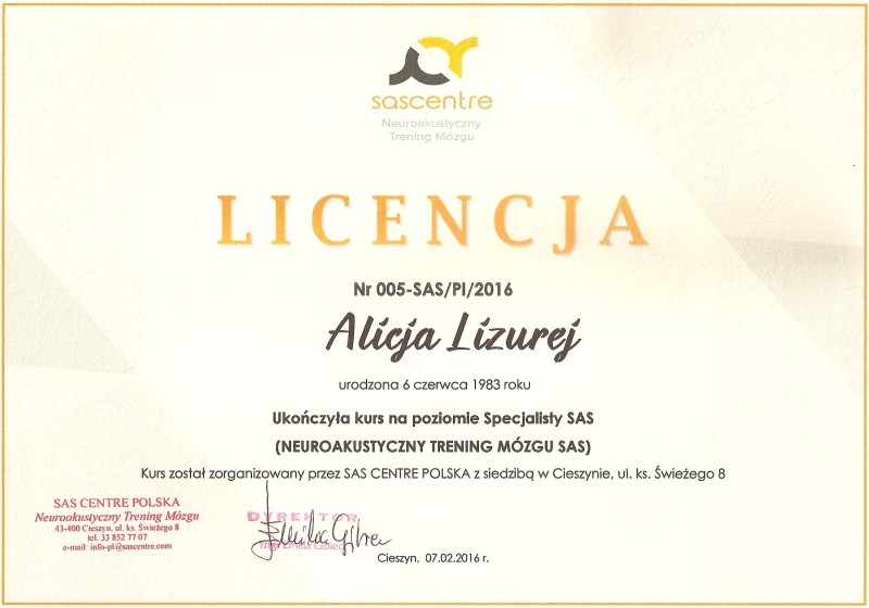 E-zajęcia prowadzi Alicja Lizurej – psycholog, specjalistka metody SAS – neuroakustycznego treningu mózgu.